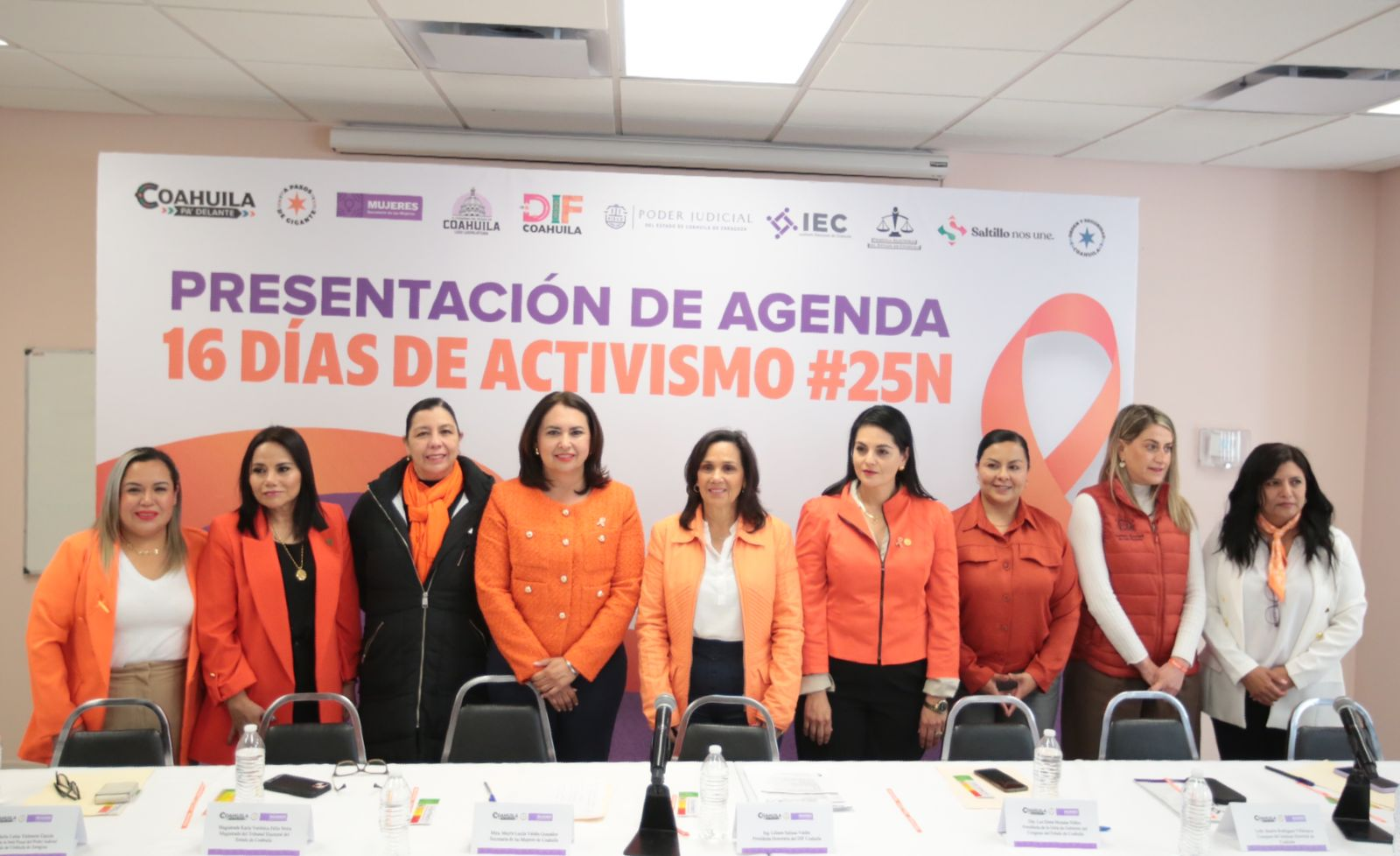 Saltillo, Coahuila de Zaragoza; a 25 de noviembre de 2024.- La Secretaría de las Mujeres, en coordinación con el DIF Coahuila, el Congreso del Estado y el Poder Judicial, presentaron la agenda 16 Días de Activismo #25N, en el marco de la conmemoración del Día Internacional para la Eliminación de la Violencia contra las Mujeres, campaña global que inicia este 25 de noviembre y que concluye el 10 de diciembre en el Día Internacional de los Derechos Humanos.