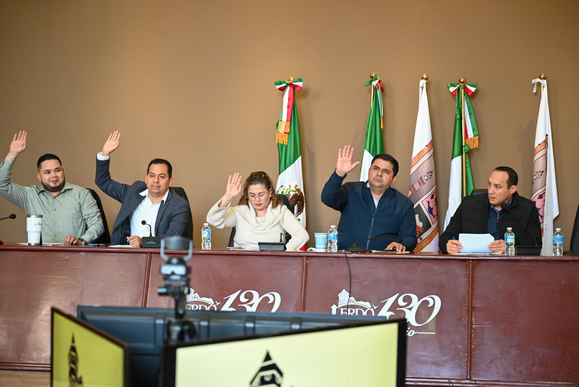 Lerdo, 19 de diciembre 2024.- Este jueves 19 de diciembre se desarrolló la Sesión Extraordinaria de Cabildo No. 019 en el lobby del Teatro “Hermila Galindo”, donde el H. Cabildo aprobó el único punto emitido por el Presidente Municipal, Dr. Homero Martínez Cabrera, para solicitar la suscripción de convenio por tiempo indeterminado con el Instituto Mexicano del Seguro Social (IMSS), para la incorporación voluntaria al Régimen Obligatorio de Seguridad Social de los Trabajadores a su servicio.