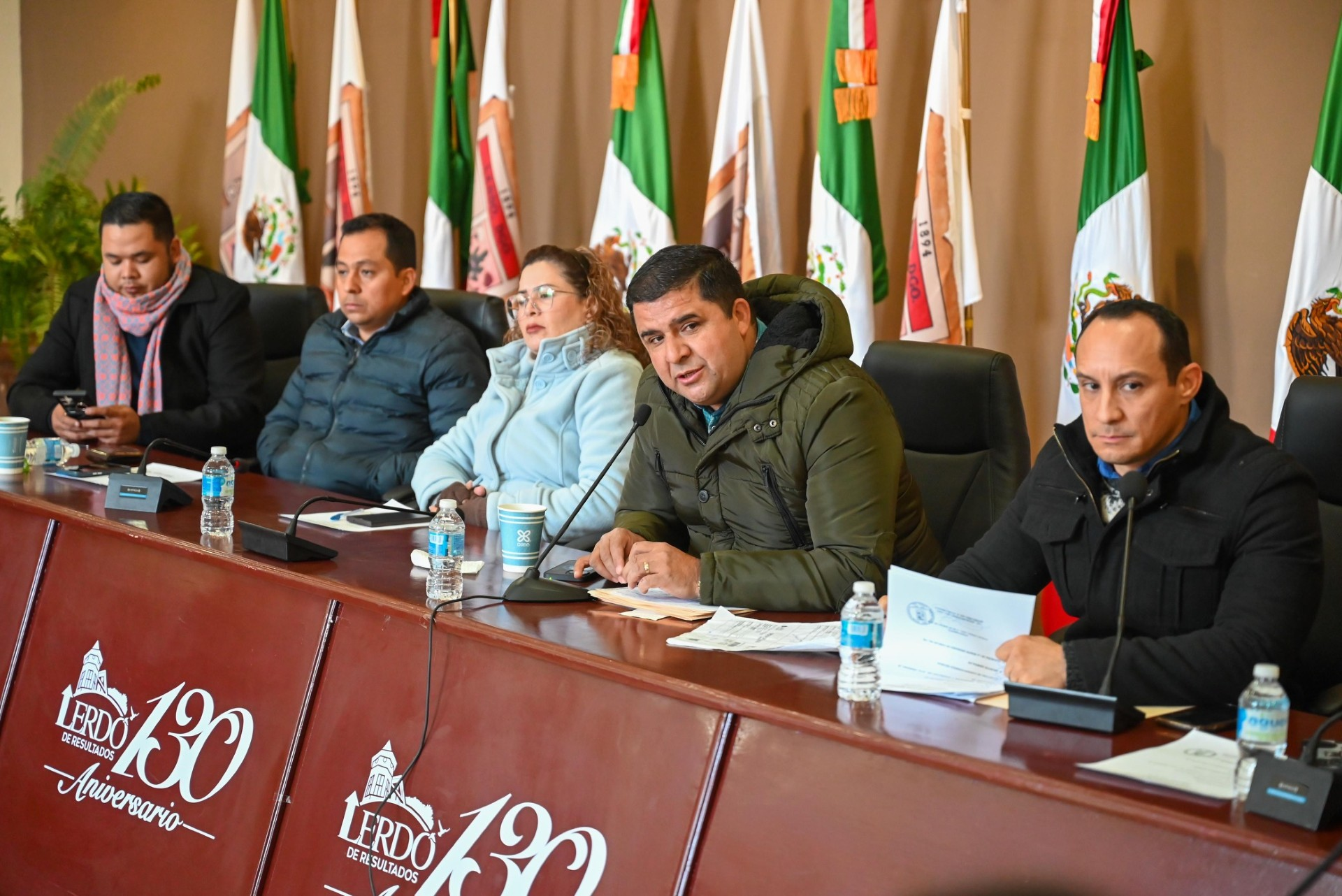 Lerdo, 09 de enero 2025.- Este jueves 9 de enero se desarrolló la primera Sesión Ordinaria de Cabildo, del año 2025, en el municipio de Lerdo, contando con la participación del Alcalde Homero Martínez Cabrera, el Secretario del Ayuntamiento Eduardo Lara, la Síndico Alina Rivera y todos los regidores.