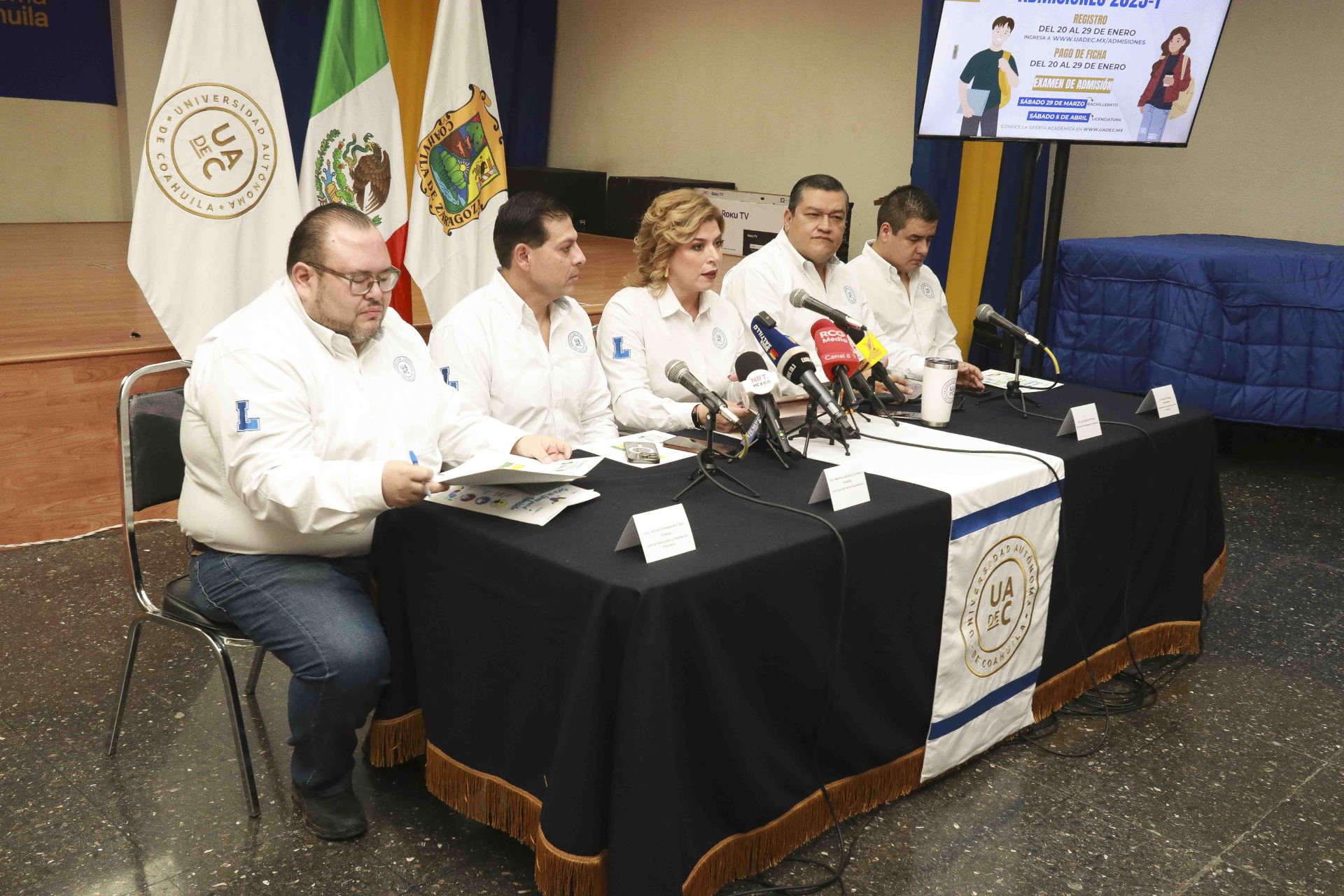 SALTILLO, Coahuila. 17 de enero de 2025. En conferencia de prensa, encabezada por el rector de la Universidad Autónoma de Coahuila, Octavio Pimentel Martínez se anunció que ya está disponible la convocatoria para el proceso de admisión para el semestre agosto-diciembre 2025 y a partir del lunes 20 al 29 de enero las y los aspirantes podrán registrarse para obtener su ficha de la oferta educativa para bachillerato, licenciatura, posgrado y educación a distancia en www.uadec.mx/admisiones/