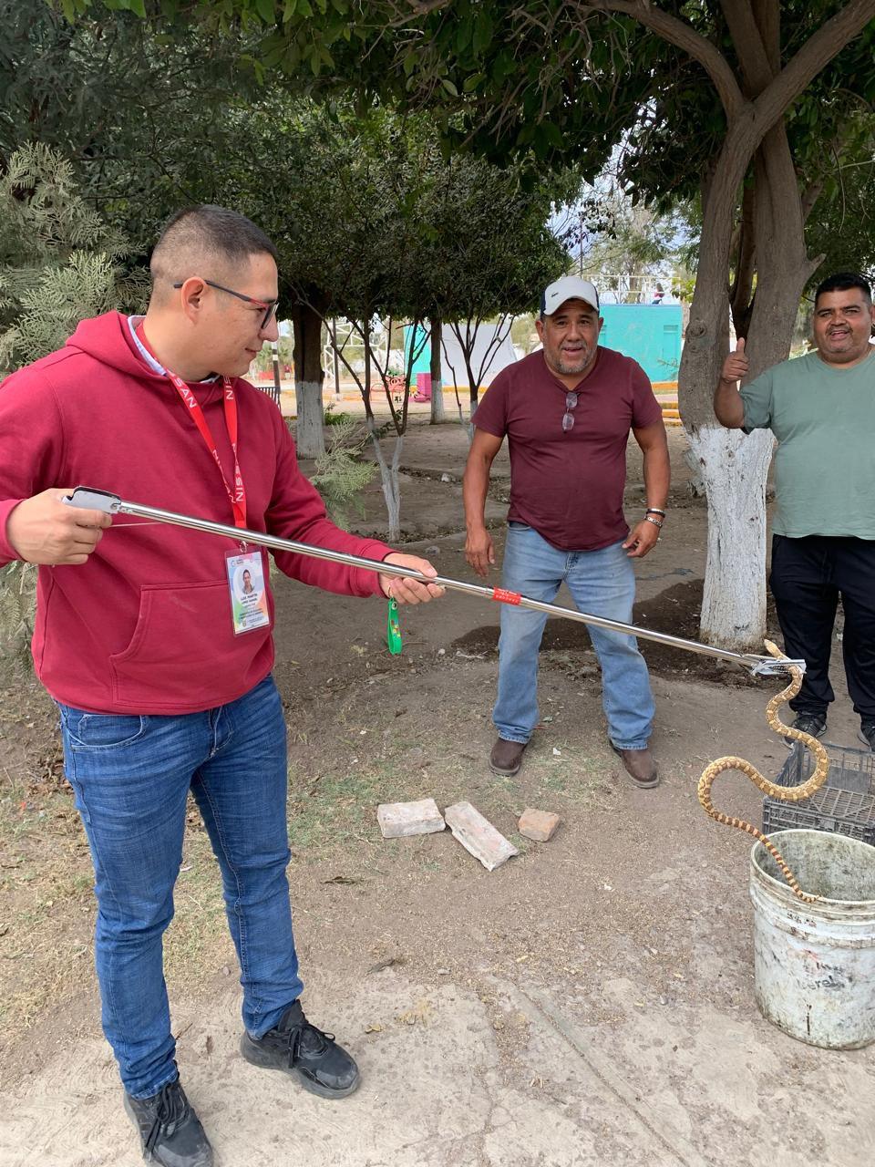 Con el propósito de salvaguardar la integridad de la población y conservar la fauna local, el Ayuntamiento de Gómez Palacio, a través de la Dirección de Ecología y Protección al Ambiente, realizó el rescate de una serpiente de la especie Pituophis catenifer, también conocida como chirrionero o serpiente maicera, en un espacio público de la colonia Cinco de Mayo.