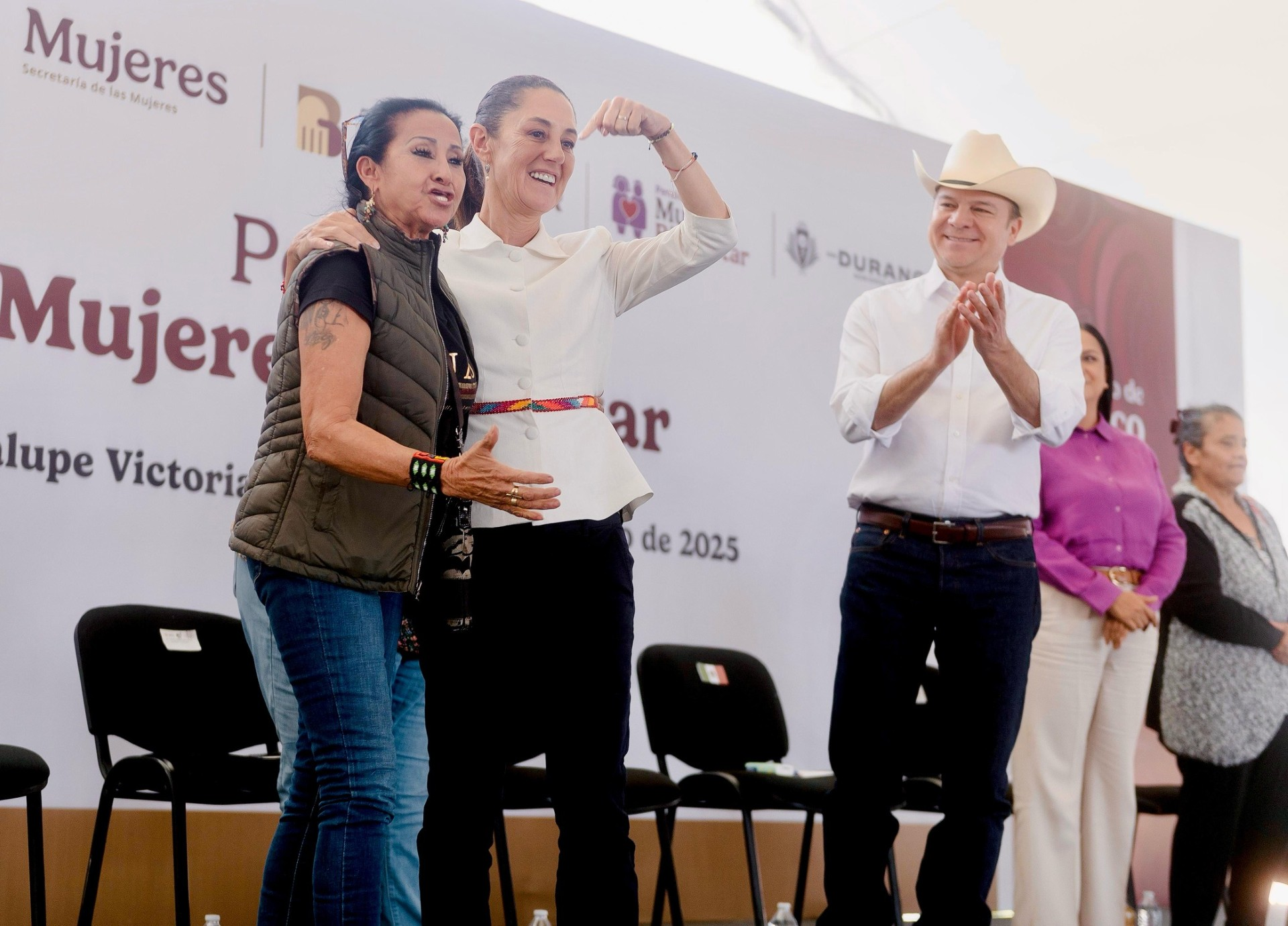 Guadalupe Victoria, Durango. La Presidenta de la República, Claudia Sheinbaum Pardo, encabezó en este municipio, la entrega de la Pensión Mujeres Bienestar, un programa dirigido a mujeres de 60 a 64 años, anunció también la implementación de dos nuevas estrategias: la Beca Rita Cetina para estudiantes de escuelas públicas y el programa Salud Casa por Casa para la atención médica de adultos mayores.