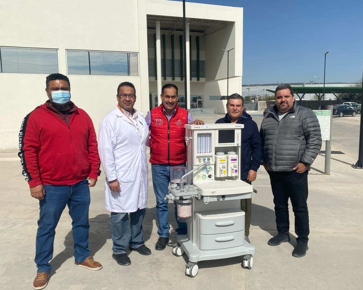 “Acabamos de recibir más insumos como materiales de curación, soluciones intravenosas o sueros, medicamentos para uso intrahospitalario, frascos de soluciones y materiales de curación. Pero quiero destacar que recibimos de manos del Dr. Luis Fernando Olvera Martínez, coordinador de Jurisdicciones Sanitarias en la SSD en Durango y del Ing. Ezequiel Jurado, jefe de la Jurisdicción Sanitaria número 4, una máquina de Anestesia marca Minday, que nos será de gran utilidad.