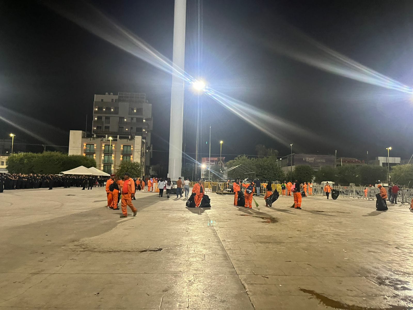 La celebración que congregó a miles de familias torreonenses en un ambiente de alegría y música generó una importante cantidad de residuos. Consciente de ello, personal de “La Ola” inició labores de recolección y barrido en las calles aledañas a la Plaza Mayor incluso durante el desarrollo del evento, garantizando una respuesta inmediata al concluir la festividad.