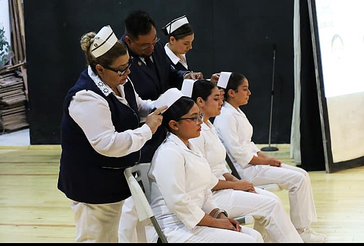 TORREÓN, Coahuila. 12 de mayo de 2025. La Facultad de Enfermería Unidad Laguna de la Universidad Autónoma de Coahuila, realizó la ceremonia de imposición de cofias y filipinas a 48 estudiantes de la Licenciatura de Enfermería e imposición de batas clínicas a cinco estudiantes de la Licenciatura de Nutrición.