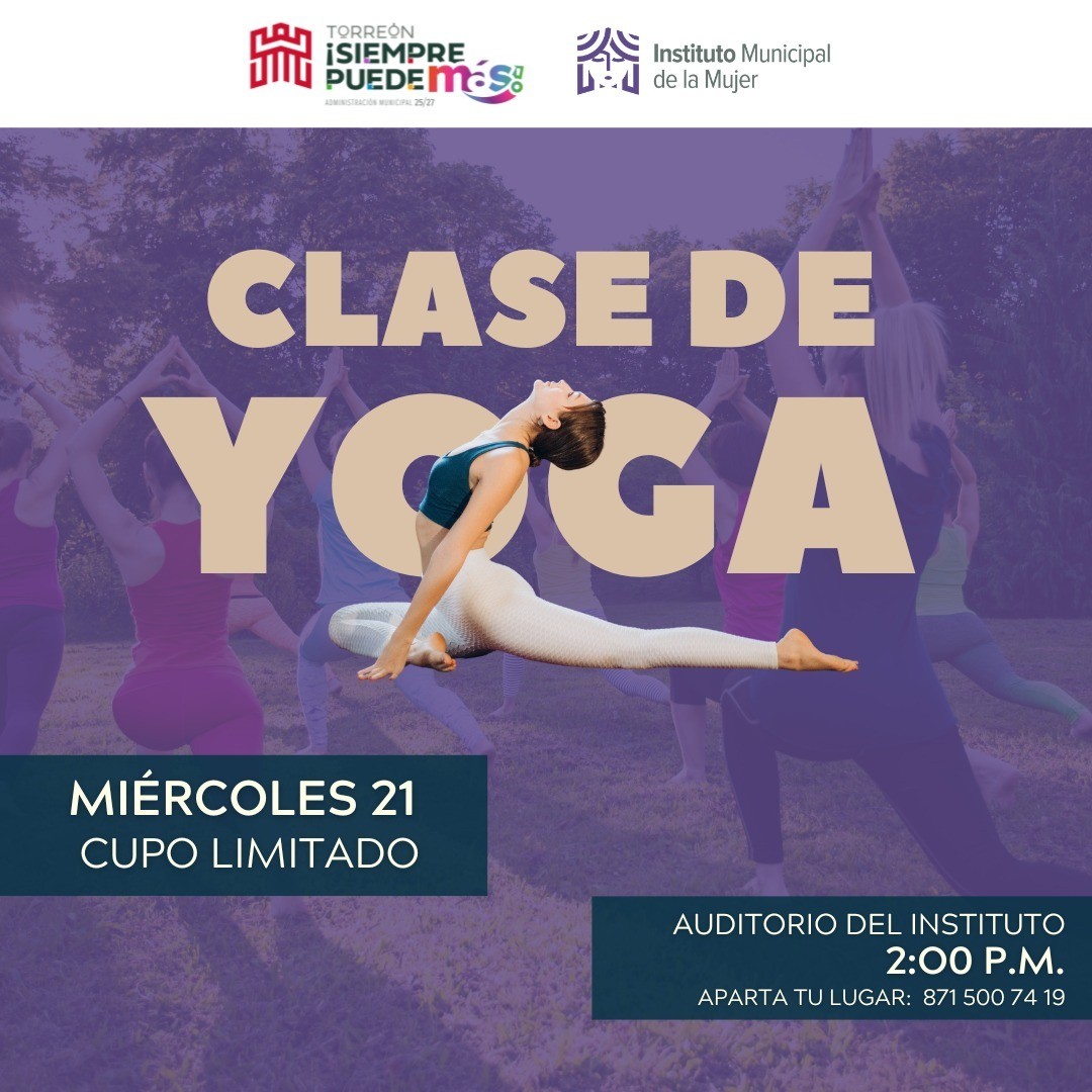 El Instituto Municipal de la Mujer (IMM) invita cordialmente a todas sus usuarias a participar en una clase especial de yoga gratuita, que se llevará a cabo el próximo miércoles 21 de mayo.