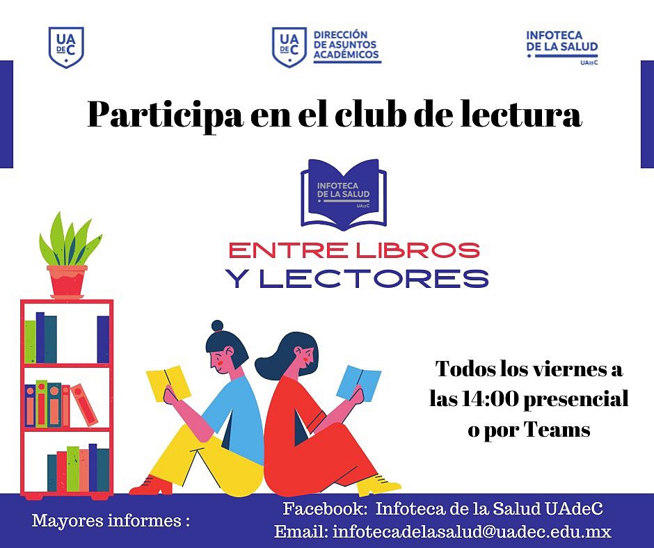 SALTILLO, Coahuila. 22 de mayo de 2025. La Universidad Autónoma de Coahuila a través de la Infoteca de la Salud de invita a la comunidad universitaria y al público en general a participar del Club de Lectura “Entre Libros y Lectores”, el cual surge como una estrategia para fomentar la lectura al ofrecer un espacio de encuentro y diálogo a través de la literatura.