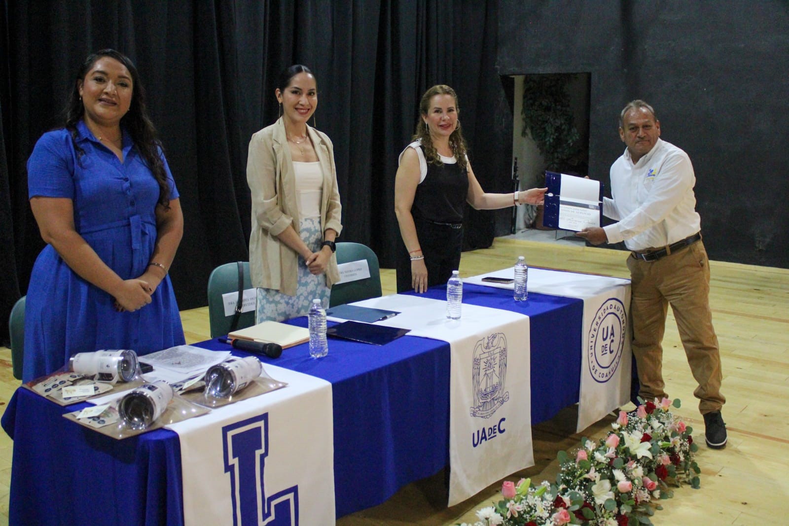 El evento realizado en el Teatro de Cámara “Remigio Valdés Gámez” de la Coordinación Unidad Laguna, en representación del rector de la máxima casa de estudios, Octavio Pimentel Martínez, asistió la coordinadora de Relaciones Internacionales, Lourdes Morales Oyervides, acompañada por la coordinadora de Unidad, Sandra López Chavarría y la subcoordinadora del Centro de Idiomas UL, Brenda Elizabeth Fraire Domínguez.