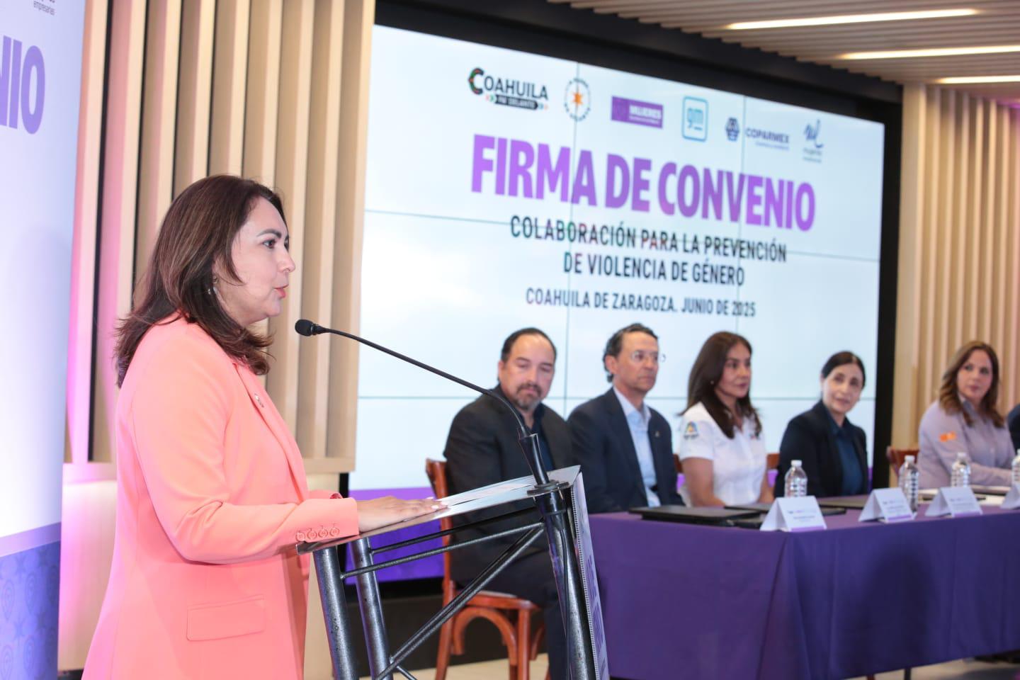 En representación de la empresa, Alicia del Valle Hinojosa, Directora Ejecutiva del Complejo Ramos Arizpe, subrayó que “este convenio se firma con el objetivo de crear un programa de capacitación y asesoría técnica que nos permita prevenir y atender la violencia contra las mujeres en nuestra sociedad, facilitando el acceso a programas y servicios especializados a quien los necesita. Esto no se trata solo de cumplir una obligación institucional, sino de asumir una responsabilidad ética con las personas.”