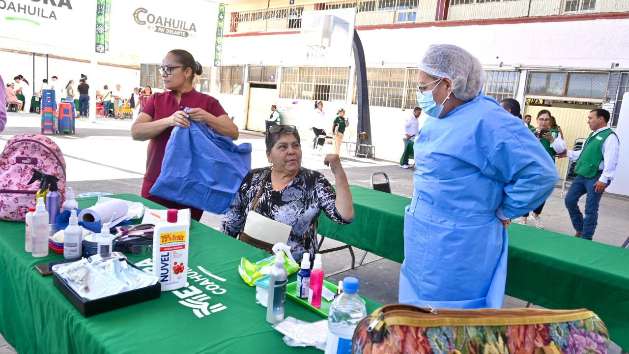 Está la Fiscalía General de Justicia con asesoría legal y jurídica; Mejora Coahuila con una Lotería; Icatec con corte de cabello y manualidades, Inedec con fisioterapia y masajes; Secretaría de Salud con módulo de vacunación y prevención de enfermedades, abate, control de glucosa, desparasitación, servicio dental, orientación alimenticia; Secretaría de Cultura con manualidades y más.