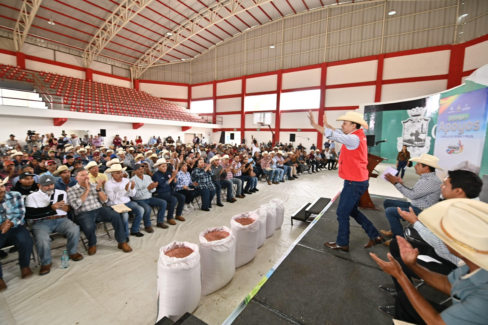 Canatlán, Dgo. – Con la convicción de que el campo debe ser productivo, rentable y una fuente de bienestar para las familias rurales, el gobernador Esteban Villegas Villarreal encabezó la entrega de 80 toneladas de semilla de avena y 30 toneladas de semilla de frijol a productores del municipio de Canatlán, como parte de una estrategia integral para fortalecer la agricultura y la ganadería en la región.