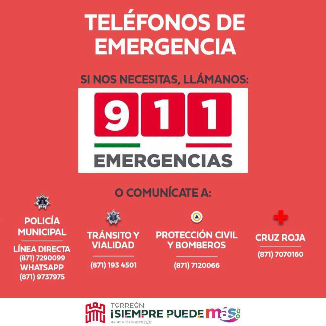 Para realizar algún reporte, la ciudadanía puede comunicarse a la Dirección de Protección Civil y Bomberos de Torreón al 871 712 00 66, o al 911.
