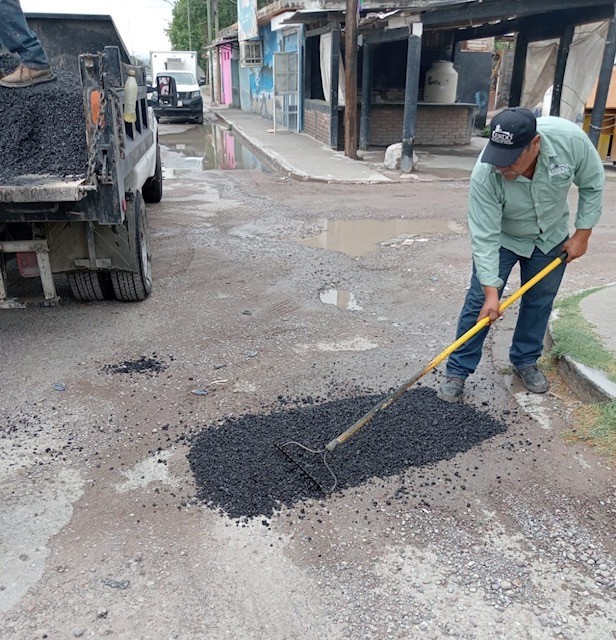 La Dirección de Obras Públicas, a través del departamento de Bacheo, reanudó labores desde temprana hora de este lunes, comenzando en la comunidad de Juan E. García y la colonia San Isidro.