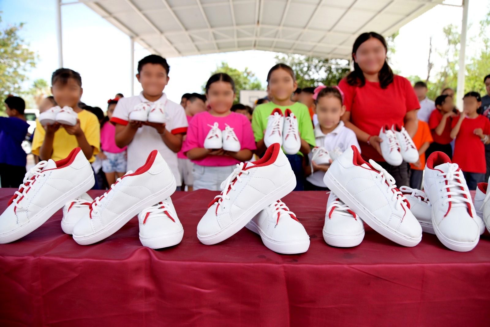 El Ayuntamiento de Gómez Palacio, a través de la Dirección de Bienestar Social, llevó a cabo la entrega de 73 pares de calzado deportivo a igual número de estudiantes de la escuela primaria Narciso Mendoza, ubicada en la comunidad de El Castillo, cumpliendo así con el apoyo a la totalidad del alumnado.