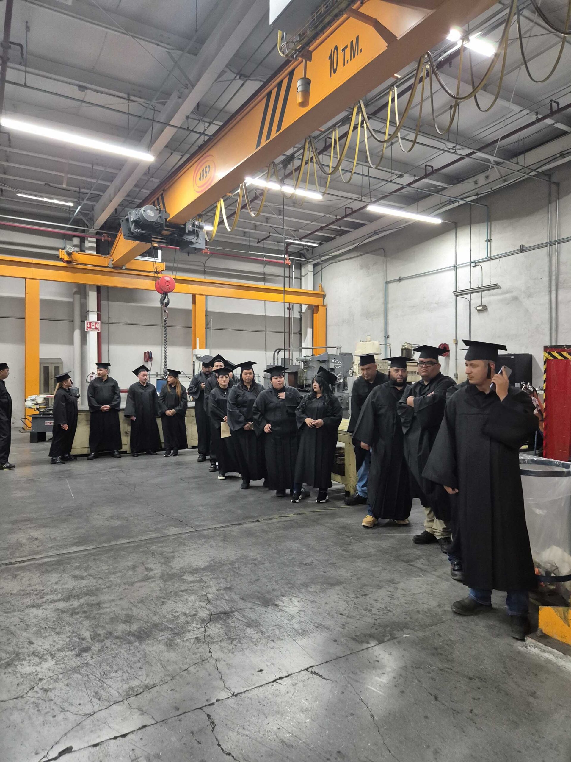 SALTILLO, Coahuila. 26 de junio de 2025. Gracias a la oferta educativa de bachillerato en línea que ofrece la Universidad Autónoma de Coahuila a través de la Coordinación General de Educación a Distancia, el pasado 20 de junio se llevó a cabo la graduación de la segunda y tercera generación de colaboradores de la empresa Rheem que cursaron su educación media superior de manera virtual en la institución.