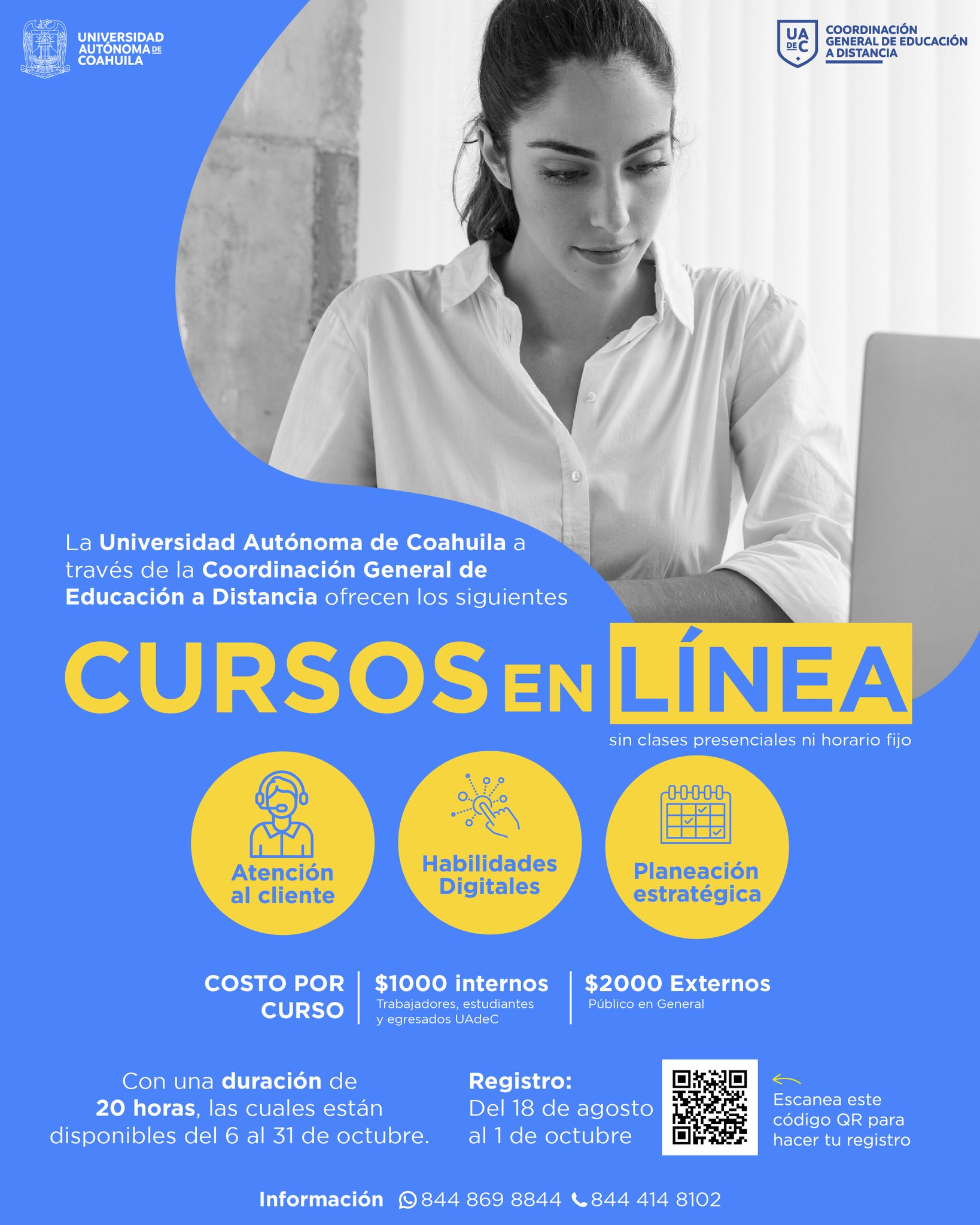 Para más información comunicarse a la Coordinación General de Educación a Distancia al teléfono (844) 414 81 02, vía WhatsApp al (844) 869 88 44 o visitar la página de Facebook https://www.facebook.com/EducacionDistanciaUAdeC