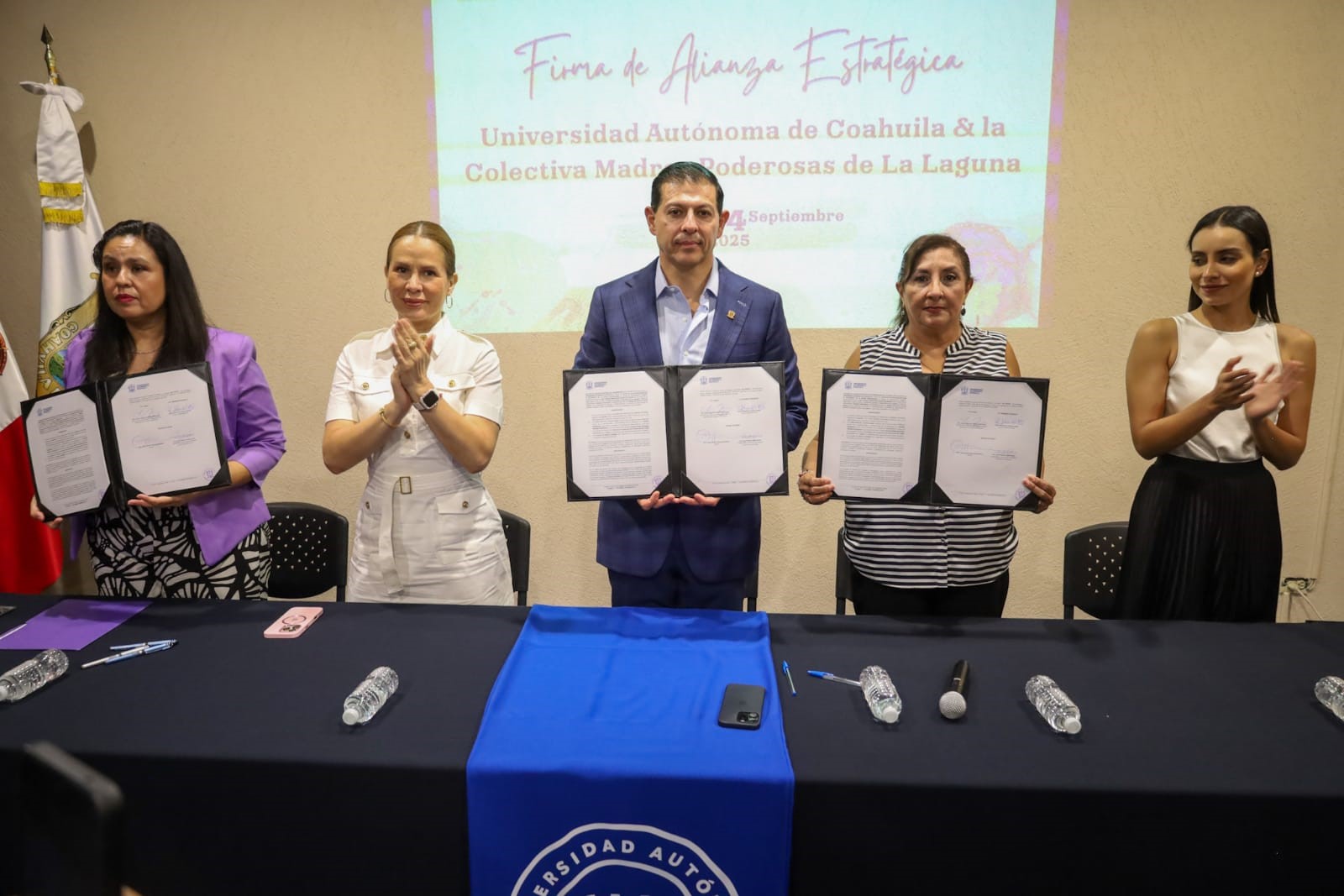 TORREÓN, Coahuila. 4 de septiembre de 2025. La Universidad Autónoma de Coahuila a través de la Coordinación de Igualdad de Género y el Instituto de Investigación para el Desarrollo Integral de la Mujer Universitaria (IIDIMU), firmó una Alianza Estratégica con la Colectiva de Madres Poderosas de la Laguna, a favor de las hijas e hijos de las víctimas de feminicidio y las personas cuidadoras adheridas a esta organización.
