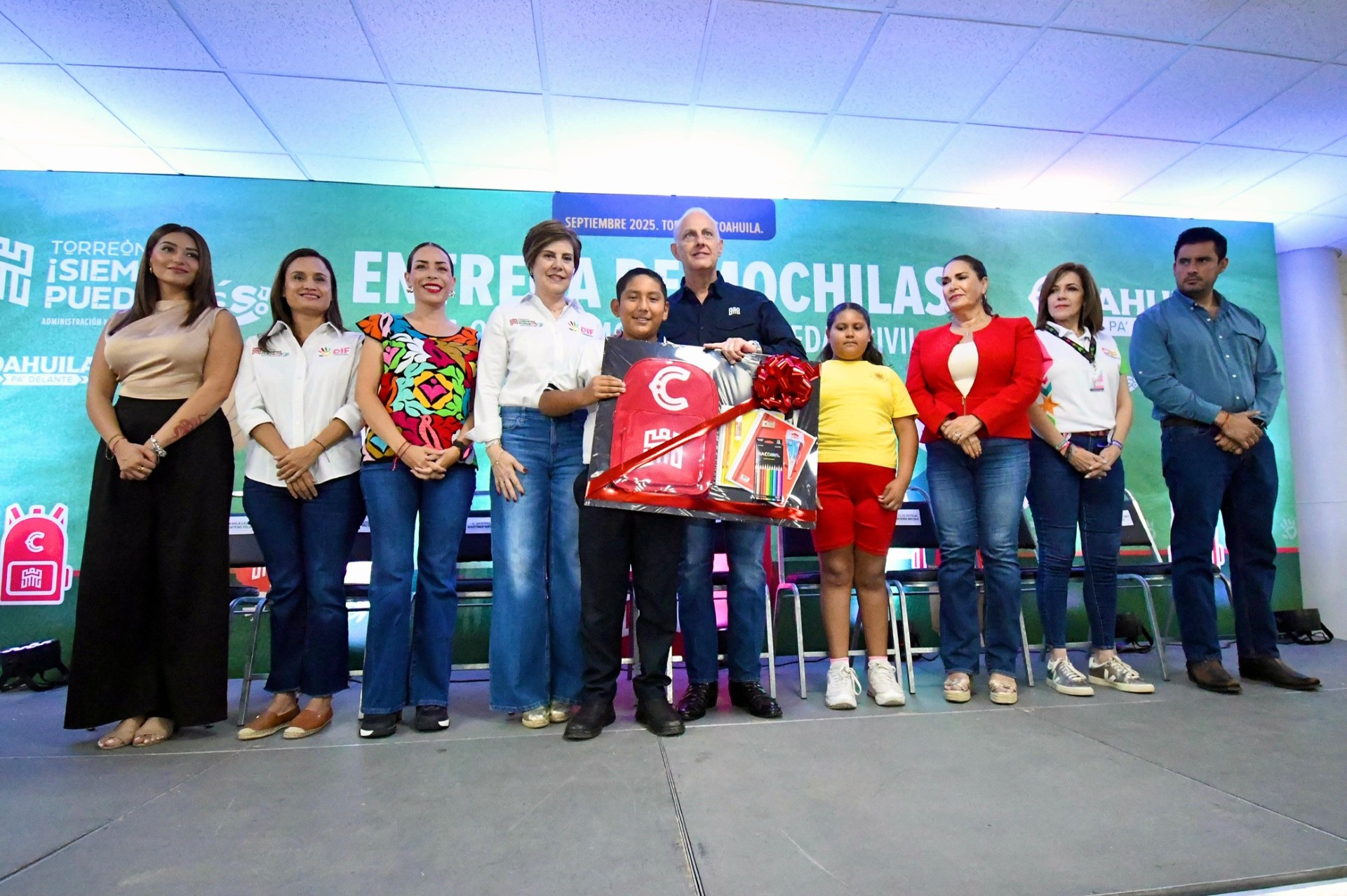 Dijo que gracias a la coordinación con el Gobernador en materia de educación, se fortalecen las estrategias con el programa de entrega de útiles escolares y mochilas en Torreón.