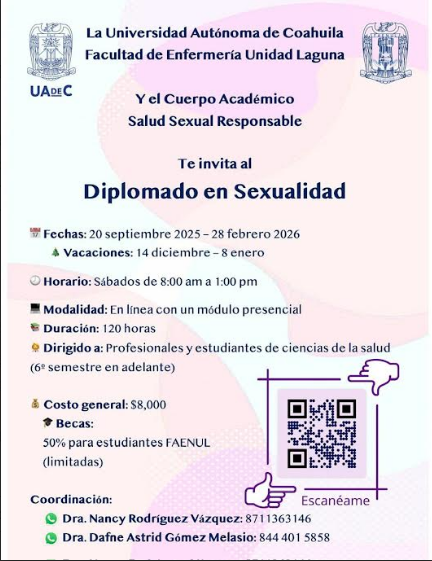 Para más información sobre el Diplomado en Sexualidad, comunicarse con la Dra.