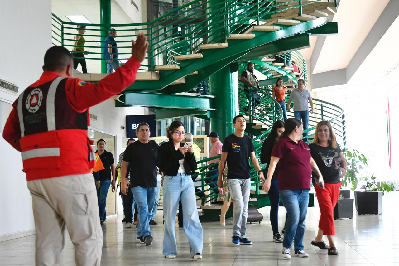 El simulacro se llevó a cabo a las 12:00 horas en todos los inmuebles registrados, evaluando aspectos como el orden, la disciplina, la organización, los sistemas de alerta, el tiempo de respuesta y el reporte de novedades, con el fin de detectar áreas de mejora y garantizar una respuesta efectiva en caso de una emergencia real.