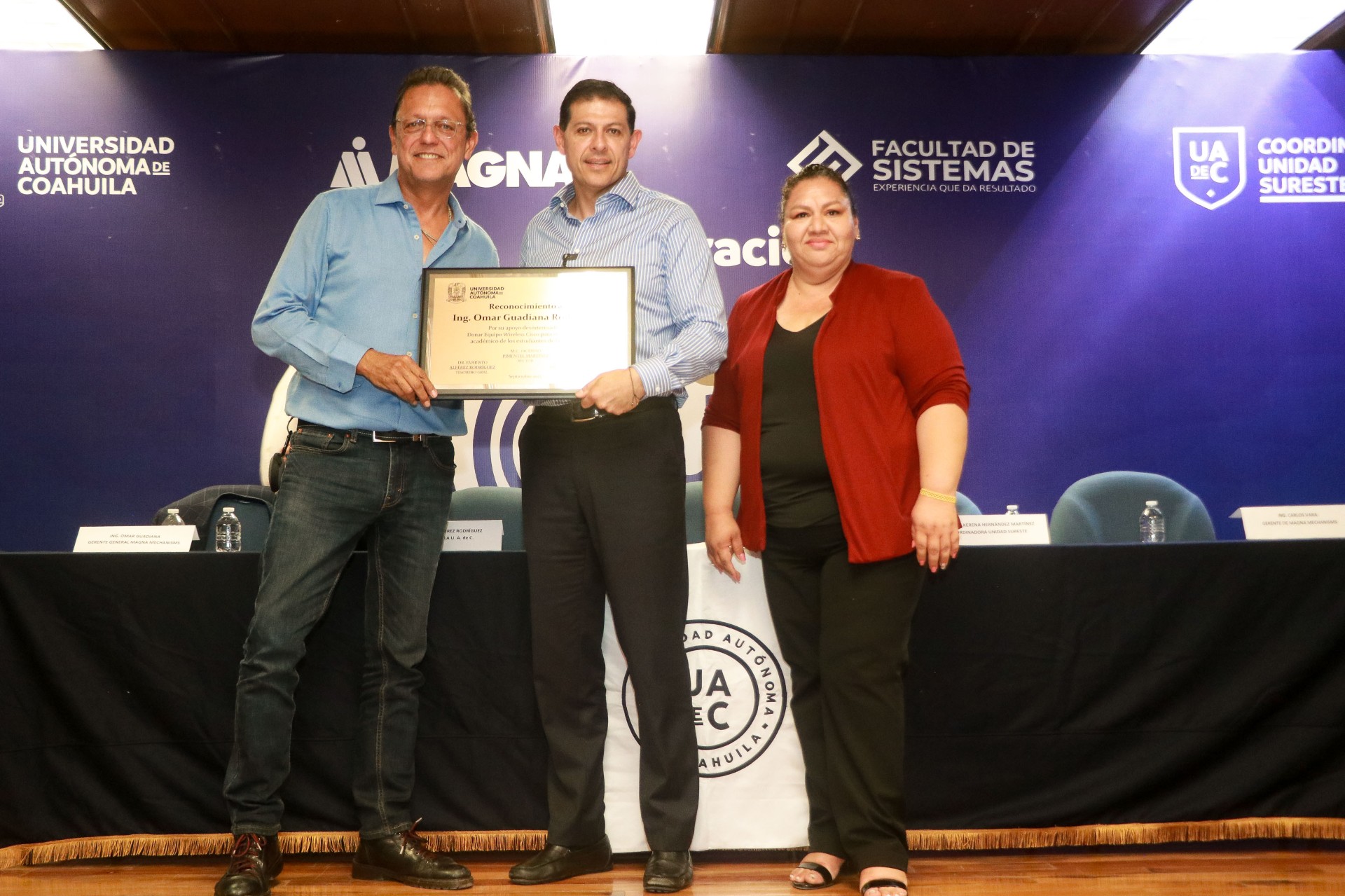 En el Auditorio Jesús Ochoa Ruesga, estuvo presente el rector de la máxima casa de estudios, Octavio Pimentel Martínez, el tesorero general, Evaristo Alférez Rodríguez, la coordinadora de Unidad Sureste, Eva Kerena Hernández Martínez, el gerente general de Magna Mechanisms, Omar Guadiana Rodríguez, el gerente de Ite Magna Mechanisms, Carlos Vara, funcionariado universitario, directores y alumnos de las diversas escuelas y facultades de Camporredondo.