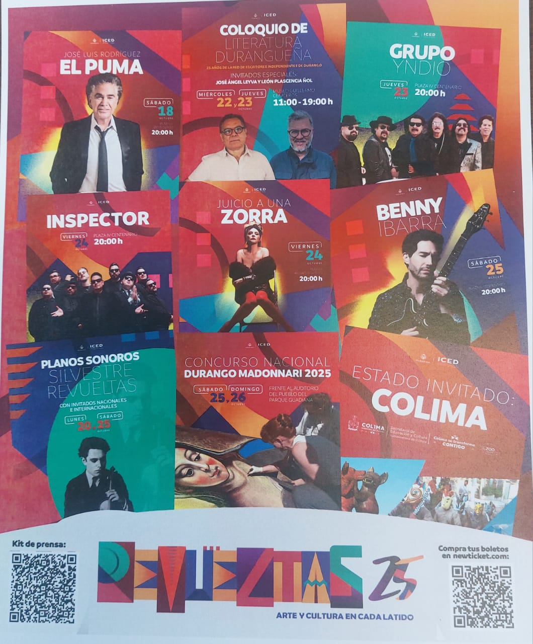 Con actividades para todas las edades y de acceso gratuito, el Festival Revueltas 2025 refrenda su vocación de acercar el arte y la cultura a la ciudadanía, consolidando a Durango como un referente cultural y turístico en el país.