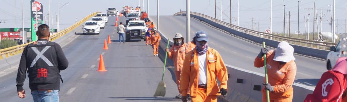 Torreón, Coahuila. A 16 de octubre de 2025.- En un esfuerzo conjunto por mejorar la imagen urbana, la Dirección General de Servicios Públicos desplegó un operativo integral de limpieza y mantenimiento en la carretera a Mieleras, desde el bulevar Revolución hasta el parque industrial Global Park, así como en los bulevares San Pedro y Ferropuertos. Fernando Villarreal Cuéllar, director de la dependencia, dio a conocer que el equipo de La Ola y Espacios Públicos realizó labores de desmalezado, poda, retiro de basura y montones de tierra, tanto en los espacios mencionados como en puentes completos, por debajo y en sus laterales. “Estas acciones se realizan para garantizar una mejor visibilidad nocturna para los automovilistas y un entorno más limpio para la ciudadanía en general”, mencionó.En este sentido, dijo que se llevaron a cabo también trabajos de alumbrado, atendiendo reportes por fallas eléctricas, y de reparación de líneas rotas, con lo cual se restablecieron 50 luminarias LED. Lo anterior, sobre el bulevar San Pedro en la Zona Industrial Ferropuertos. Además, el director informó que como parte de la estrategia de embellecimiento urbano, el programa antigraffiti retiró rayones en puentes y realizó encalado en las bardas a lo largo de la carretera a Mieleras. Villarreal Cuéllar agregó que estas acciones se realizan con el objetivo de mantener en óptimas condiciones las principales vialidades de acceso a la ciudad, así como los corredores industriales, donde diariamente transitan trabajadores, transportistas y visitantes. Asimismo, destacó que estas labores forman parte del compromiso de la Administración del alcalde Román Alberto Cepeda González, de mantener una ciudad limpia, ordenada y segura pa