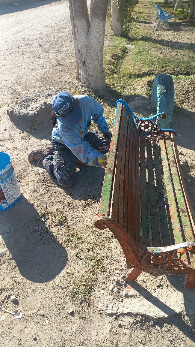 Con el propósito de generar espacios dignos y coordinar esfuerzos con autoridades auxiliares del medio rural, el Ayuntamiento de Gómez Palacio lleva a cabo trabajos de limpieza y mantenimiento en plazas y techumbres de comunidades rurales.
