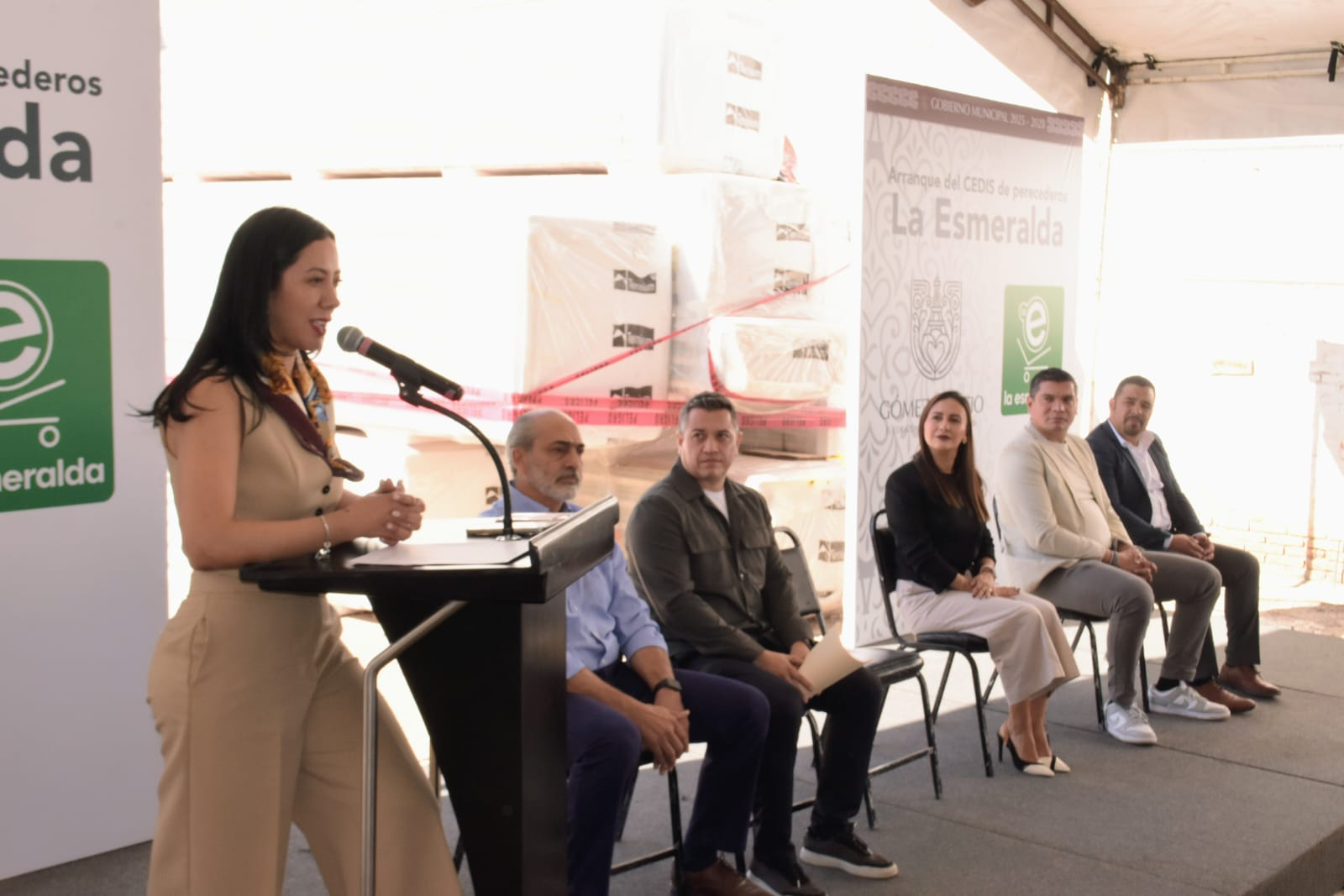 La Presidenta Municipal de Gómez Palacio, Betzabé Martínez Arango, encabezó el arranque de los trabajos de lo que será el Centro de Distribución de Perecederos del Centro Comercial La Esmeralda, un proyecto que representa una inversión de 55 millones de pesos y la generación de 80 empleos directos, con una superficie de 2,000 metros cuadrados.