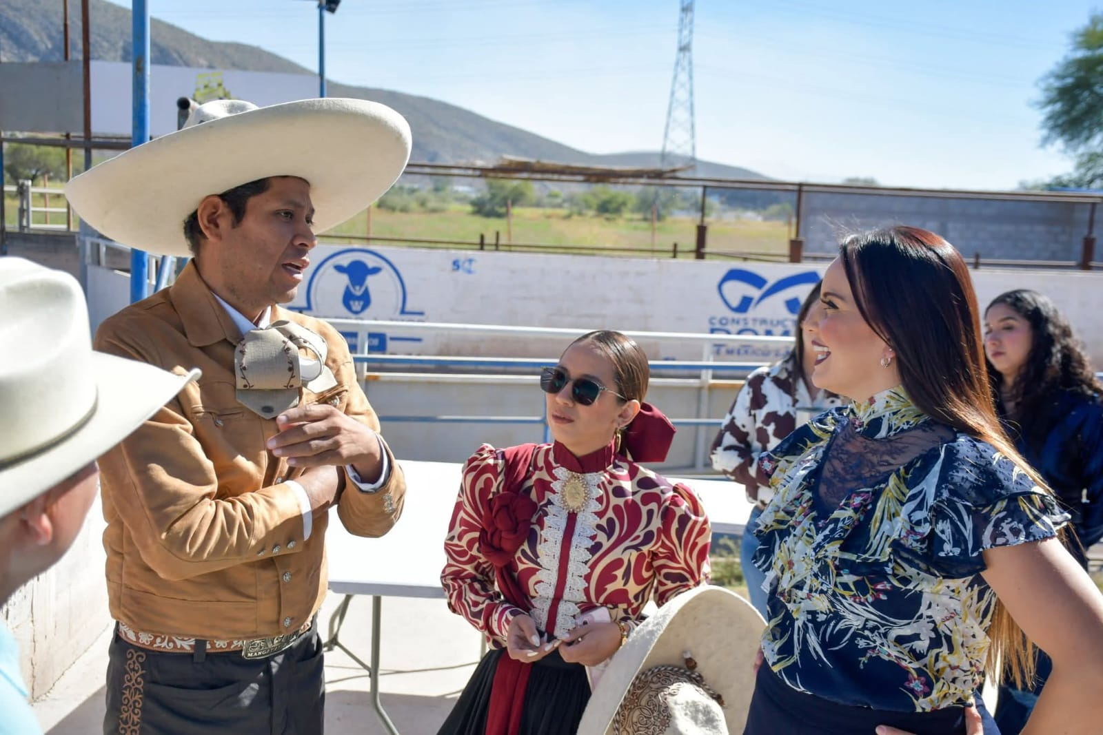 La edil estuvo acompañada por Jacquelin Pinto, directora de Atención a la Juventud, miembro del grupo de Escaramuzas del Lienzo Charro Leonardo Manuel, pertenecientes a la asociación mexicana de charrería; así como José Macías Flores, maestro de charrería y niñas y niños de la escuela de escaramuzas, Itzel Escobedo, Sara Ramírez, Regina Castillo, María José Macías y el pequeño charro Andrés Macías.