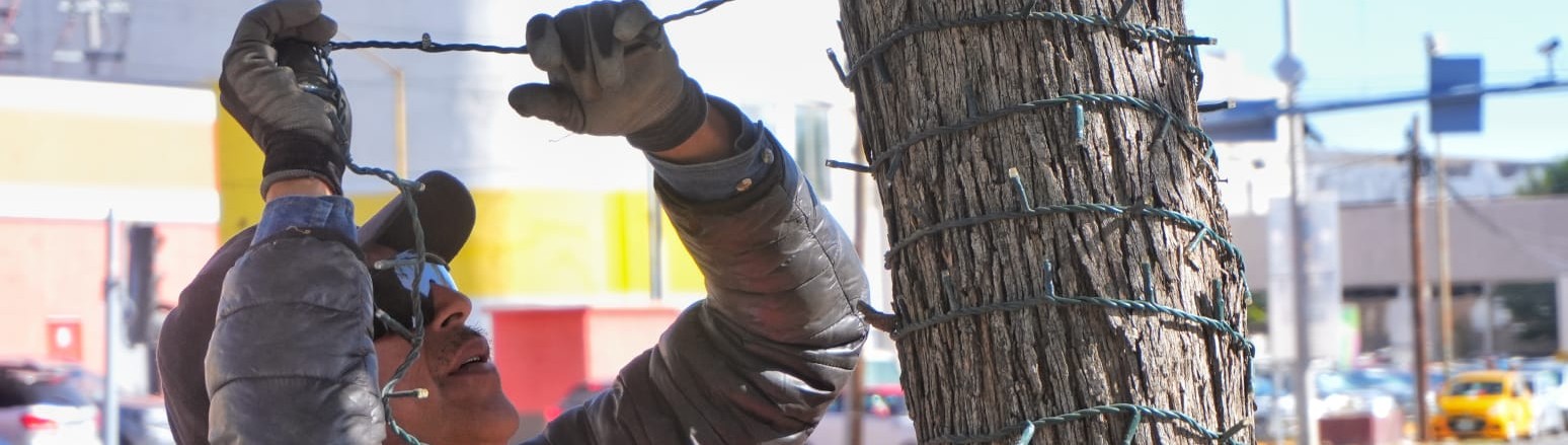 Torreón, Coahuila. A 06 de noviembre de 2025.- La Dirección de Servicios Públicos ha iniciado los preparativos para la temporada decembrina con la instalación de series navideñas en el bulevar Independencia. La colocación inició a la altura de la calle Ildefonso Fuentes y se extenderá hasta el periférico Raúl López Sánchez. Fernando Villarreal Cuéllar, titular de la dependencia, dio a conocer que los trabajos se centran en colocar series de luz cálida en los troncos de los árboles y palmas, que se encuentran en los camellones. Indicó que se tiene proyectado instalar alrededor de 120 series durante esta semana, y se espera culminar los trabajos de colocación a final del mes. En total sumarán 27 mil metros de iluminación para dar luz y color a las festividades decembrinas y al encendido del pino navideño en la Plaza Mayor, actividad que realiza la Administración Municipal en conjunto con el Gobierno del Estado en diciembre. El funcionario informó que en próximos días, la decoración se extenderá a la calzada Colón con la instalación de las famosas “cascadas de luz”, así como en Paseo Morelos. “La decoración luminosa en los árboles y palmas realizada el año pasado, se quedó de manera permanente gracias a la gran aceptación de los ciudadanos”, resaltó el director. Adicionalmente, se contempla la futura instalación de series decorativas en la avenida Juárez, el bulevar de la Nogalera y la Plaza Mayor, para tener una ciudad iluminada durante la temporada. Villarreal Cuéllar destacó que estas acciones cumplen los objetivos de la Administración Municipal encabezada por el alcalde Román Alberto Cepeda González, de ofrecer a la ciudadanía espacios dignos que fomenten el sano esparcimiento y que incentiven la convivencia familiar.