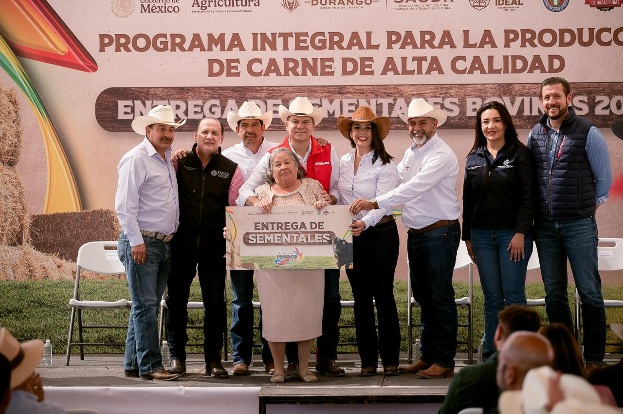 Nuevo Ideal, Dgo.— Para fortalecer la productividad y elevar la calidad genética del hato ganadero duranguense, el gobernador Esteban Villegas Villarreal impulsa el Programa Integral para la Producción de Carne de Alta Calidad, con el que se avanza en la meta de mil sementales de registro en todo el estado. A la fecha, se han entregado alrededor de 500 ejemplares en distintos municipios y, como parte de este esfuerzo, en Nuevo Ideal se realizó la entrega de más de 60 sementales bovinos de registro a productores locales, bajo un esquema de inversión compartida: 50 por ciento aportado por los beneficiarios y 50 por ciento subsidiado por los gobiernos estatal y federal.