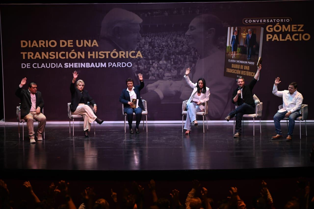 El conversatorio tuvo lugar en el Teatro Alberto M. Alvarado, que registró un lleno total por parte de gomezpalatinos que atendieron la convocatoria realizada por Danielo Hernández Vela, coordinador de la gira estatal de presentación del libro en Durango; además de Lulú García, amiga personal de la Presidenta de la República, así como la diputada federal Alejandra del Valle y los diputados locales Alejandro Mata y Octavio Adame.