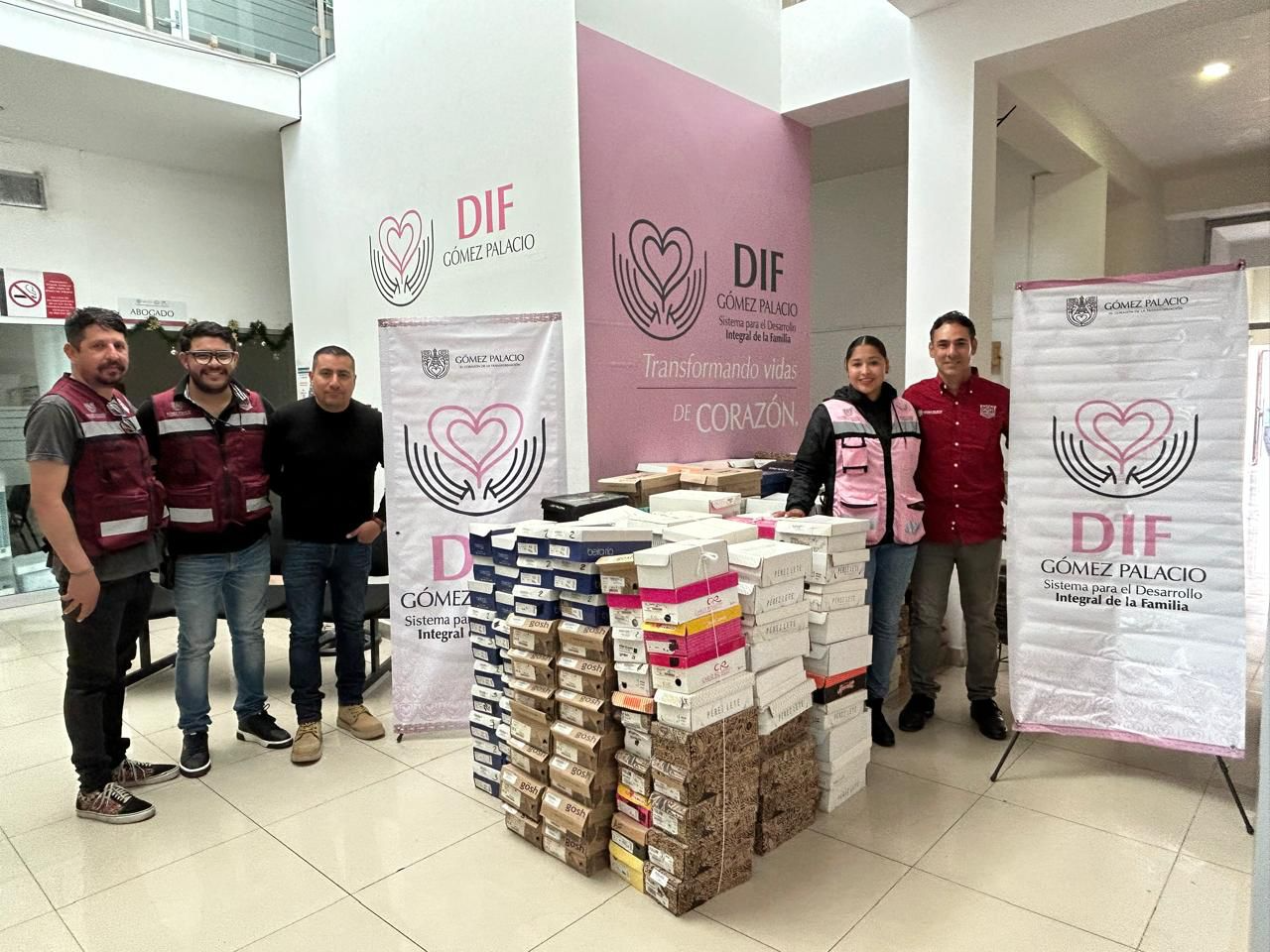 El Sistema para el Desarrollo Integral de la Familia (DIF) Gómez Palacio recibió la donación de 350 pares de zapatos nuevos, además de una cantidad significativa de medicamentos, lo que fortalecerá su capacidad de respuesta ante las necesidades que se presentan en sus distintas unidades de atención.