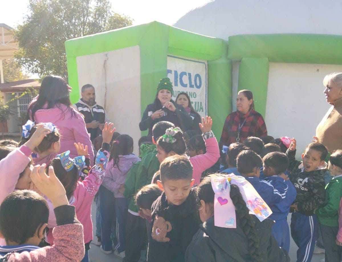 Lerdo 10 de diciembre 2025.- El departamento de Cultura del Agua del SAPAL (Sistema de Agua Potable y Alcantarillado de Lerdo) impartió esta semana una charla sobre el cuidado del agua, en diferentes escuelas de la Colonia 18 de Julio, a través de actividades realizadas en el Domo 3D.