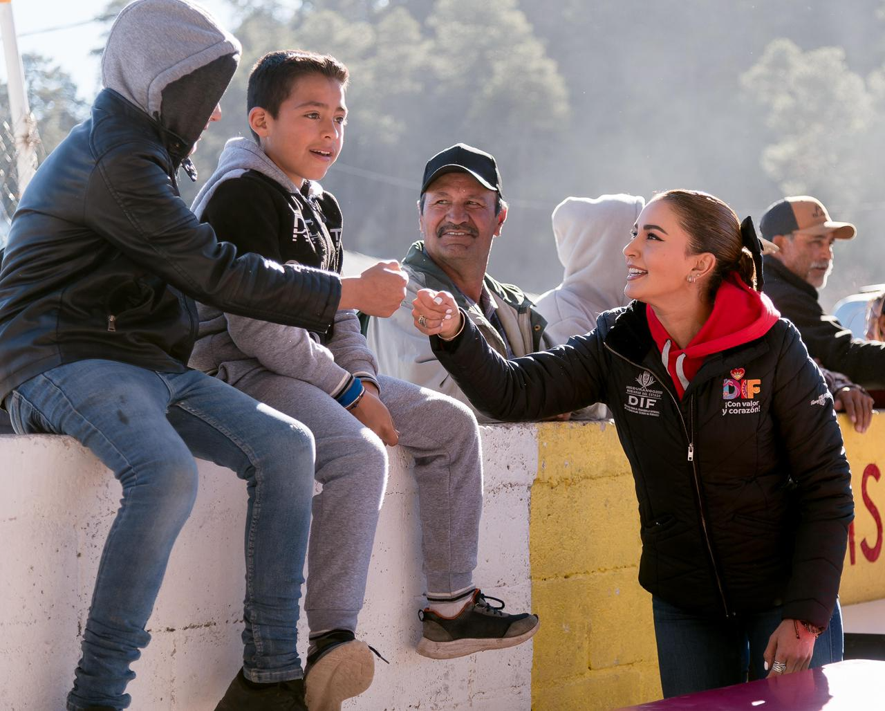 La Rosilla, Guanaceví, Dgo.– En la zona sierra de Durango, considerada la más fría del país, la presidenta del DIF Estatal, Marisol Rosso Rivera, visitó la comunidad de La Rosilla, donde convivió con las familias y llevó apoyos invernales, regalos para niñas y niños, además de compartir la tradicional rosca de Reyes, acciones que fortalecen el bienestar de las familias y ayudan a enfrentar las bajas temperaturas de la temporada.