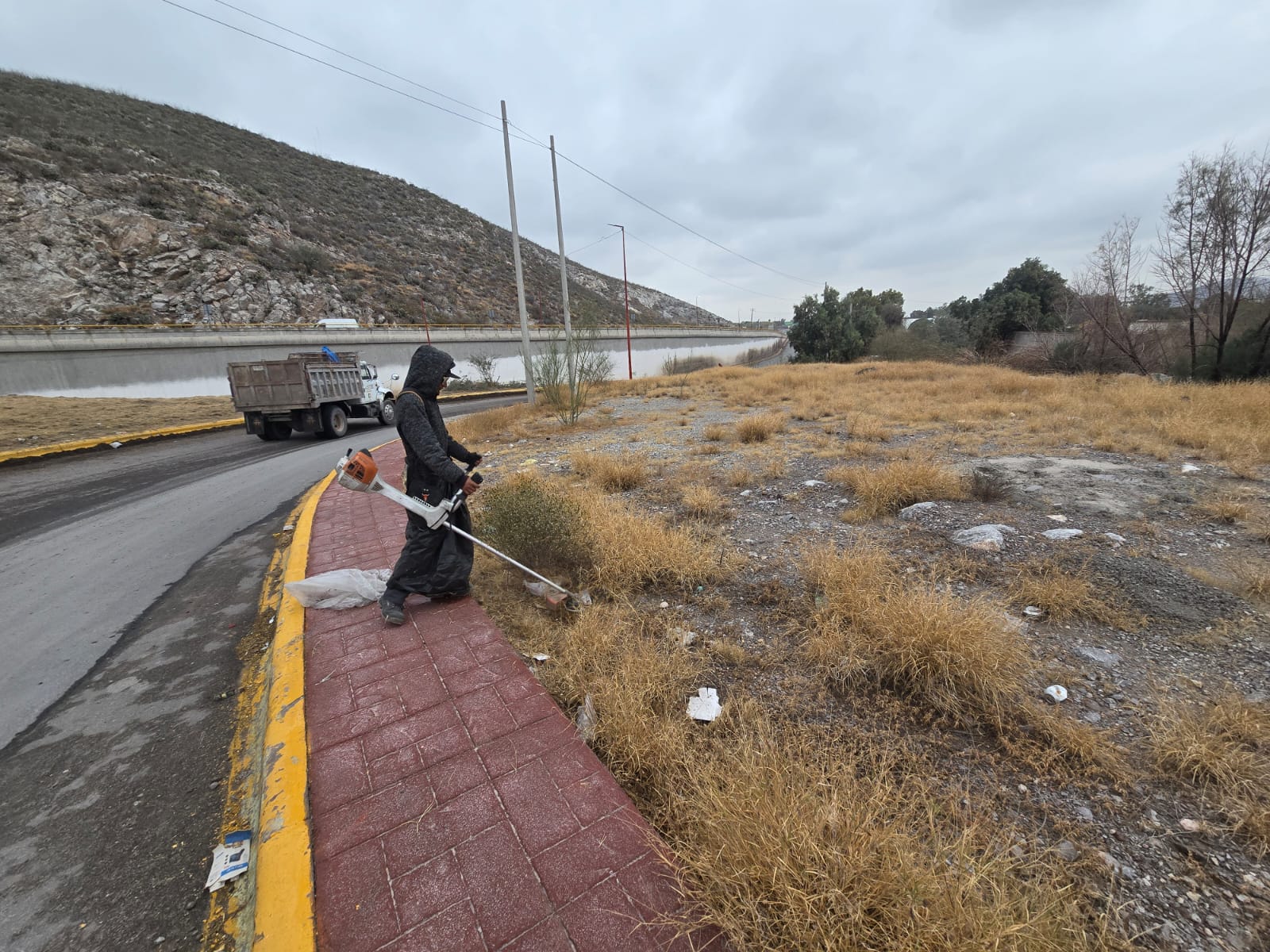 Durante la mañana de este miércoles, personal de las áreas de Parques y Jardines acudió al lugar para iniciar labores de limpieza general, recolección de basura y retiro de desechos arrojados por automovilistas, así como basura vegetal producto del deshierbe, gravilla y otros materiales que pudieran representar un riesgo o afectación para los conductores.