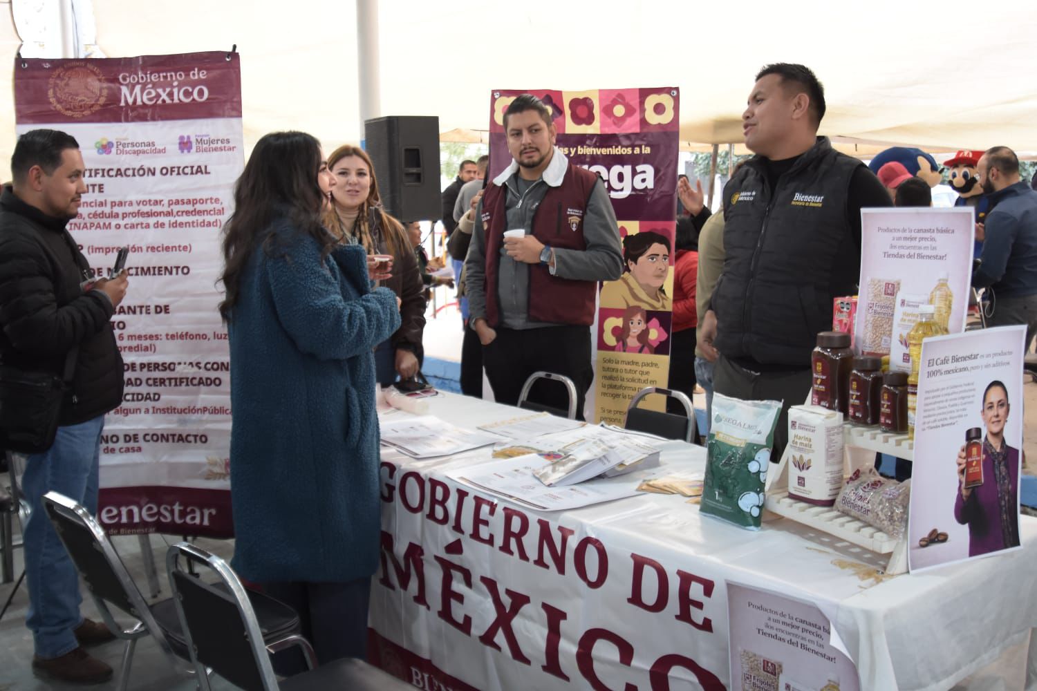 A pesar de las bajas temperaturas, el gobierno municipal entregó de manera gratuita lienzos de hule y despensas a quienes lo solicitaron. De manera paralela, bajo la techumbre, en los pasillos de la plaza y el kiosco, se instalaron módulos de atención claramente identificados, donde dependencias municipales y federales ofrecieron información y servicios específicos a la población.