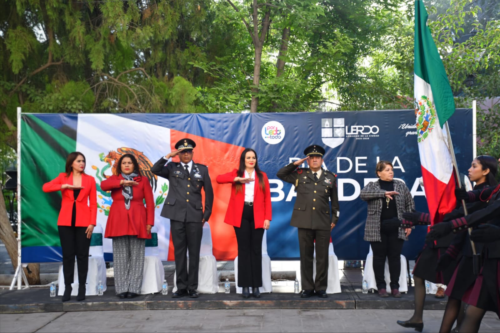 Lerdo, 24 de febrero de 2026.– Este martes, la Presidenta Municipal Susy Carolina Torrecillas Salazar encabezó el acto cívico conmemorativo por el Día de la Bandera en el Paseo Sarabia, con la participación de más de 14 instituciones educativas del municipio.