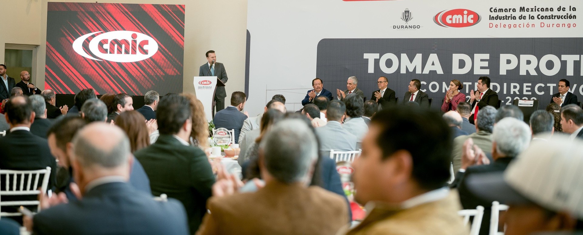 En este evento estuvieron presentes, Donato Gutiérrez, coordinador ejecutivo de Gestión Estratégica de la CMIC Nacional, el presidente de la Junta de Gobierno y Coordinación Política del Congreso del Estado, Ernesto Alanís Herrera; el Magistrado presidente del Tribunal Superior de Justicia, Manuel Valadez Díaz, el director del centro de la Secretaría de Infraestructura de Comunicaciones y Transportes José Froylán García, además de la titular de la SECOPE, Ana Rosa Hernández Rentería y Raúl Montelongo, presidente del Consejo Coordinador Empresarial.