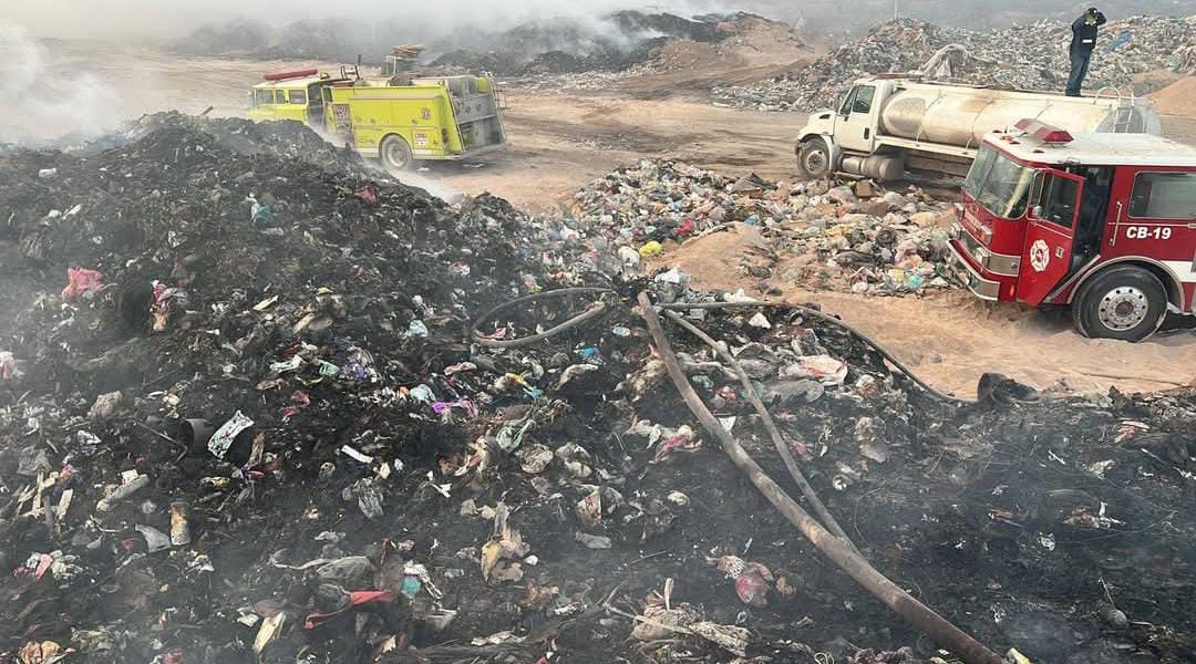 Lerdo, 27 de febrero de 2026.– Luego de más de 20 horas de intensas labores, el Cuerpo Heroico de Bomberos logró sofocar en su totalidad el incendio provocado en el relleno sanitario del municipio.