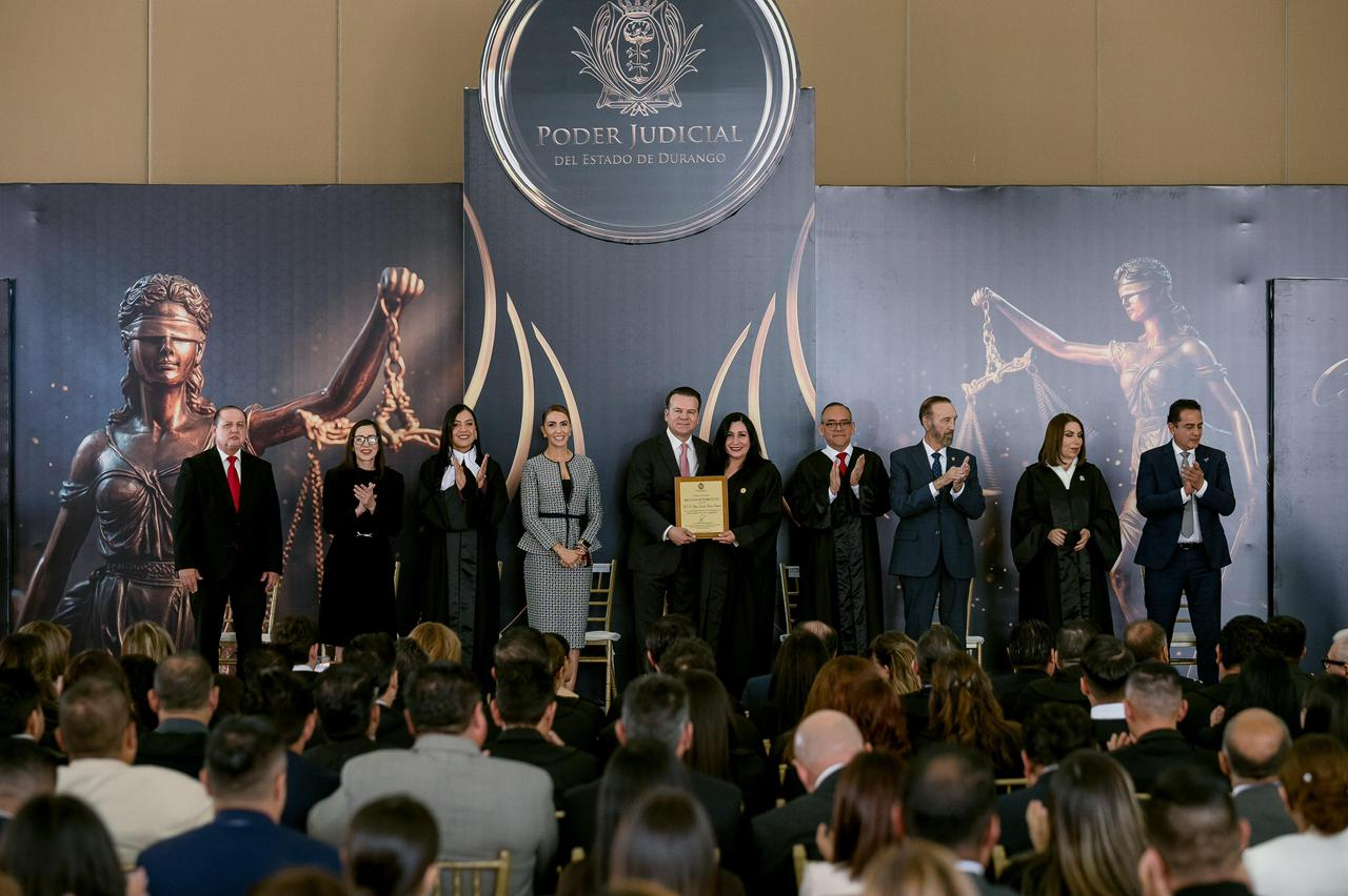 En la entrega de reconocimientos a jueces, juezas, magistradas, magistrados y comisionados, Villegas Villarreal resaltó que muchos juzgadores cuentan con trayectorias de entre 20 y 30 años de servicio, tiempo en el que han contribuido con su trabajo y experiencia a fortalecer el bienestar de la sociedad duranguense.