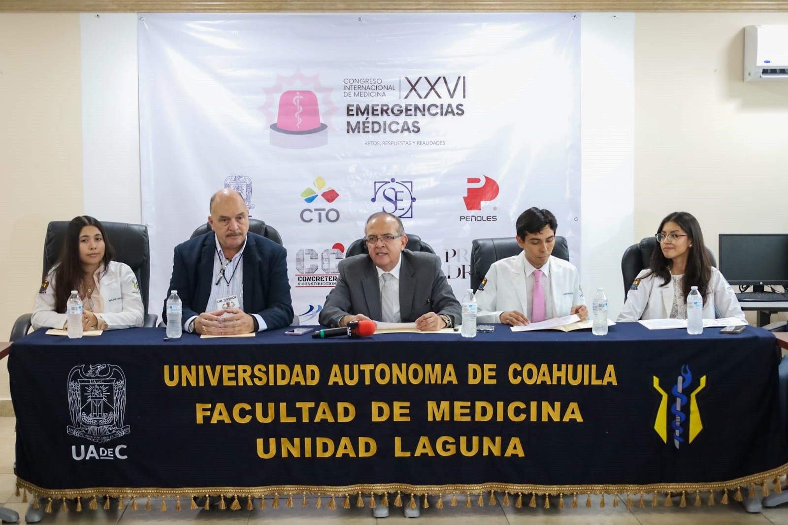 En rueda de prensa dieron a conocer los detalles del congreso, el director de la Facultad de Medicina, Carlos Enrique Acevedo Aguirre, el coordinador y asesor del Congreso, Carlos Siwady, el alumno y presidente del comité organizador, Luis Fernando Heredia Álvarez, las alumna y vicepresidenta, Marlene Guadalupe Mendoza González y la alumna y secretaria, Sofía Fernández Valerio.