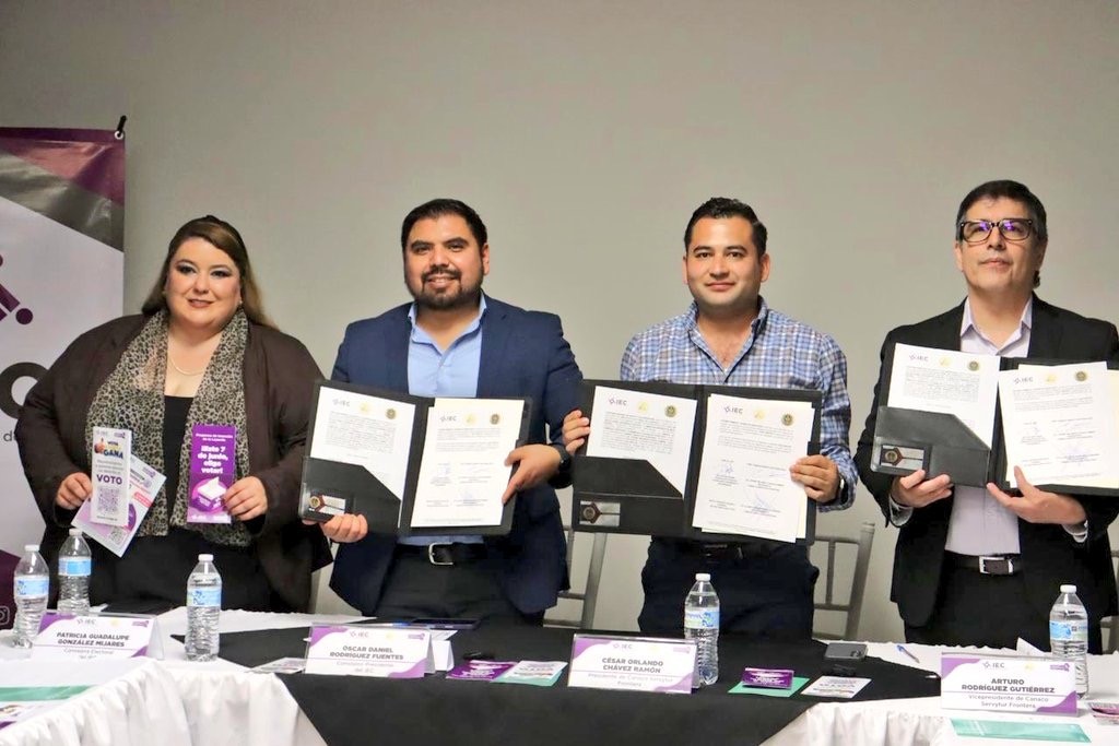 El Instituto Electoral de Coahuila (IEC) firmó este viernes 10 de abril convenios de colaboración con las Cámaras Nacionales de Comercio, Servicios y Turismo (CANACO) de Monclova y Frontera, con la finalidad de llevar a cabo actividades conjuntas para incentivar y promover el voto de la ciudadanía en la Jornada Electoral del 7 de junio.