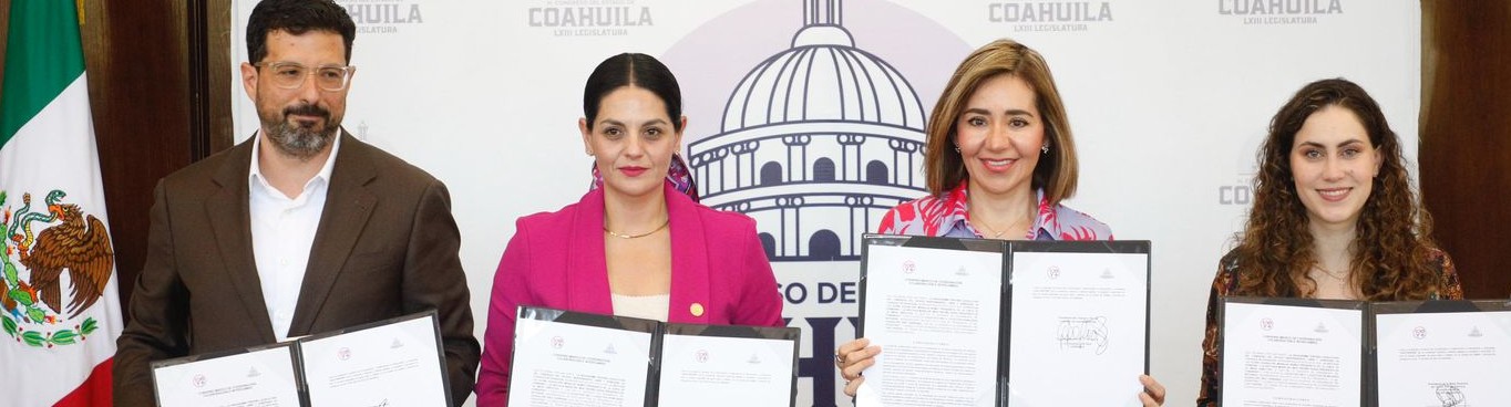 Saltillo, Coahuila, 13 de abril de 2026.- El Congreso del Estado de Coahuila y el “Colectivo 100 Y +” , firmaron un convenio de colaboración, a fin de impulsar iniciativas que consoliden la paridad, la equidad de género y el fortalecimiento del Estado de Derecho, asimismo buscando que las reformas gestadas en el ámbito local tengan eco a nivel federal. En este evento se contó con la presencia en el presídium de la diputada Luz Elena Morales Núñez, presidenta de la Junta de Gobierno del Congreso del Estado; la licenciada Guadalupe Díaz Carranza, presidenta del “Colectivo 100 Y +”, el licenciado Francisco Aguirre Sánchez, presidente del Colegio de Notarios del Estado de Coahuila; y la diputada María del Mar Treviño Garza, presidenta de la Mesa Directiva del Tercer Año de la LXIII Legislatura. Previo a la firma del convenio, la diputada Luz Elena Morales dio un mensaje en el que señaló: “Con la firma de este convenio y el impulso de iniciativas que vamos a estar trabajando, se demuestra un compromiso que no se detiene no nada más en Coahuila, sino queremos también que trascienda…Queremos que puedan estas acciones proteger el patrimonio, los derechos y la tranquilidad no solamente de las mujeres de Coahuila, sino de todo el país. Hagamos que esta alianza sea el motor de verdaderos cambios…” Por su parte, Guadalupe Díaz expresó que este convenio también tiene como objetivo seguir fortaleciendo la participación de las mujeres en la búsqueda d a la igualdad de derechos, asimismo destacó que es el primero que se firma en un estado del país y dentro de unos días se firmará el primero a nivel internacional, por lo que Coahuila es nuevamente pionero en legislación de avanzada en favor de las mujeres. Francisco Aguirre expresó que lo que se formaliza hoy es un marco de coordinación institucional para compartir agendas, impulsar iniciativas y atender temas fundamentales con paridad de género, igualdad de oportunidades, empoderamiento de la mujer y atención integral a grupos vulnerables. En esta ceremonia se contó también con la presencia de las diputadas Magaly Hernández Aguirre y Beatriz Fraustro Dávila, así como de notarias y notarios del estado, personal del Congreso, entre otros distinguidos invitados.